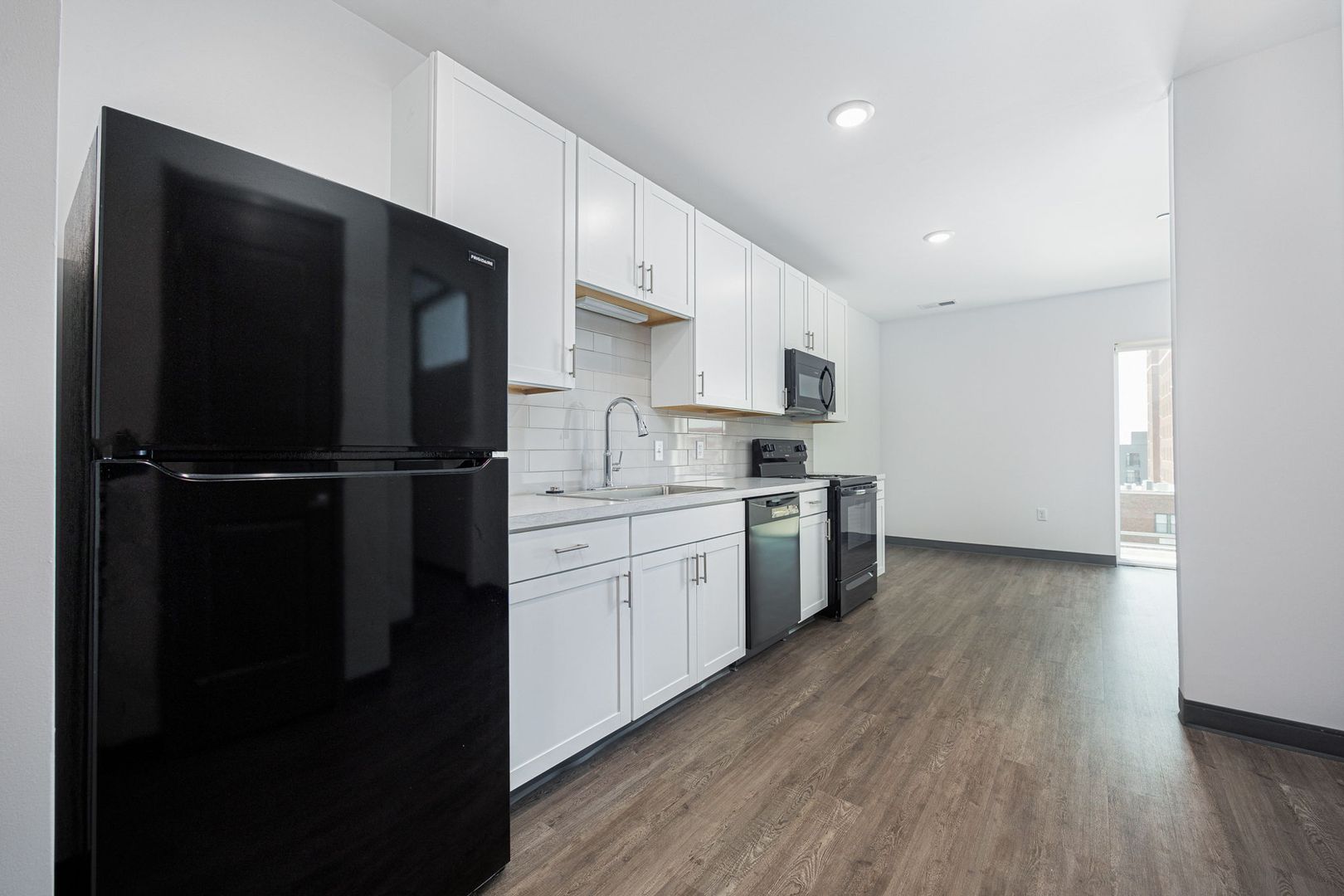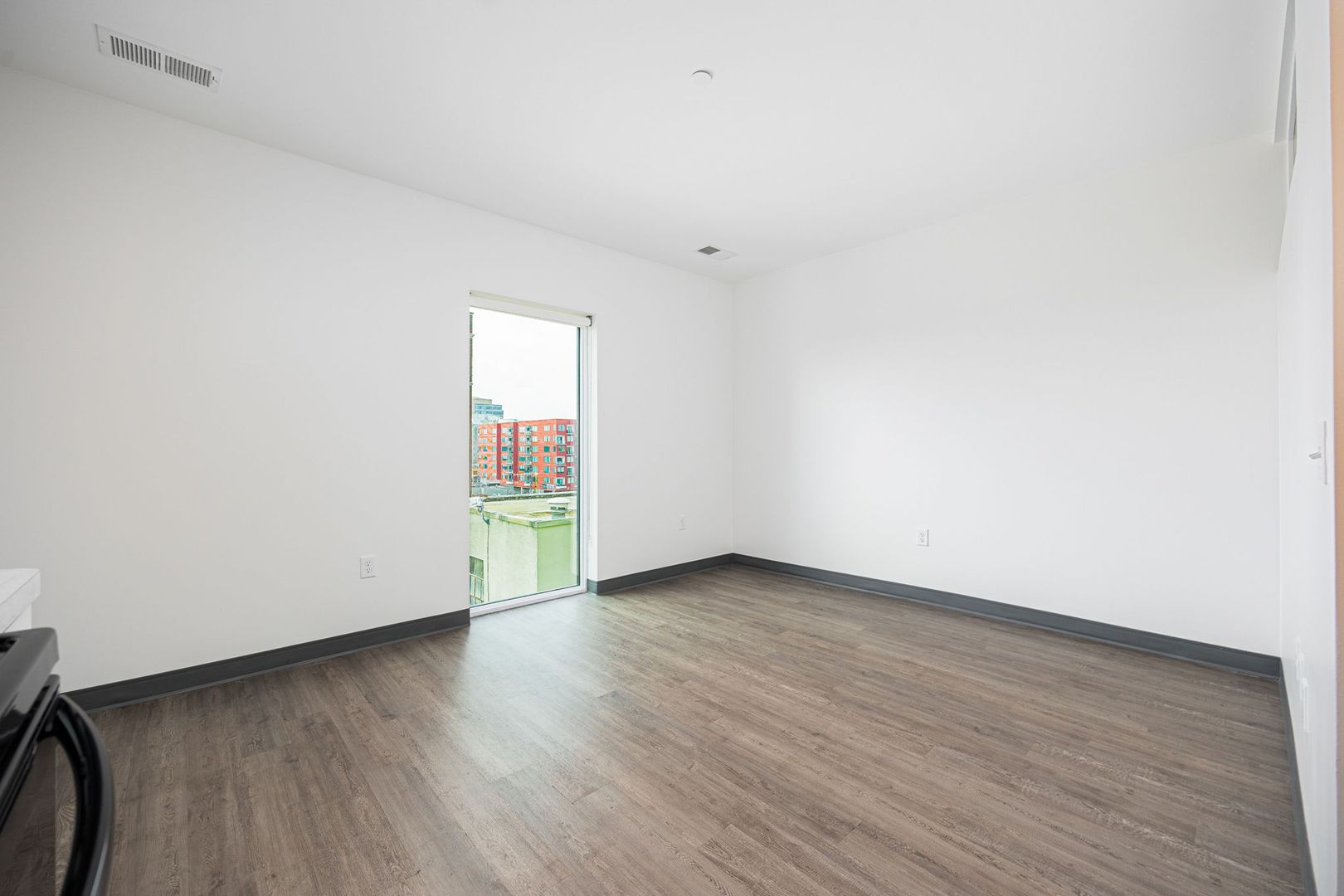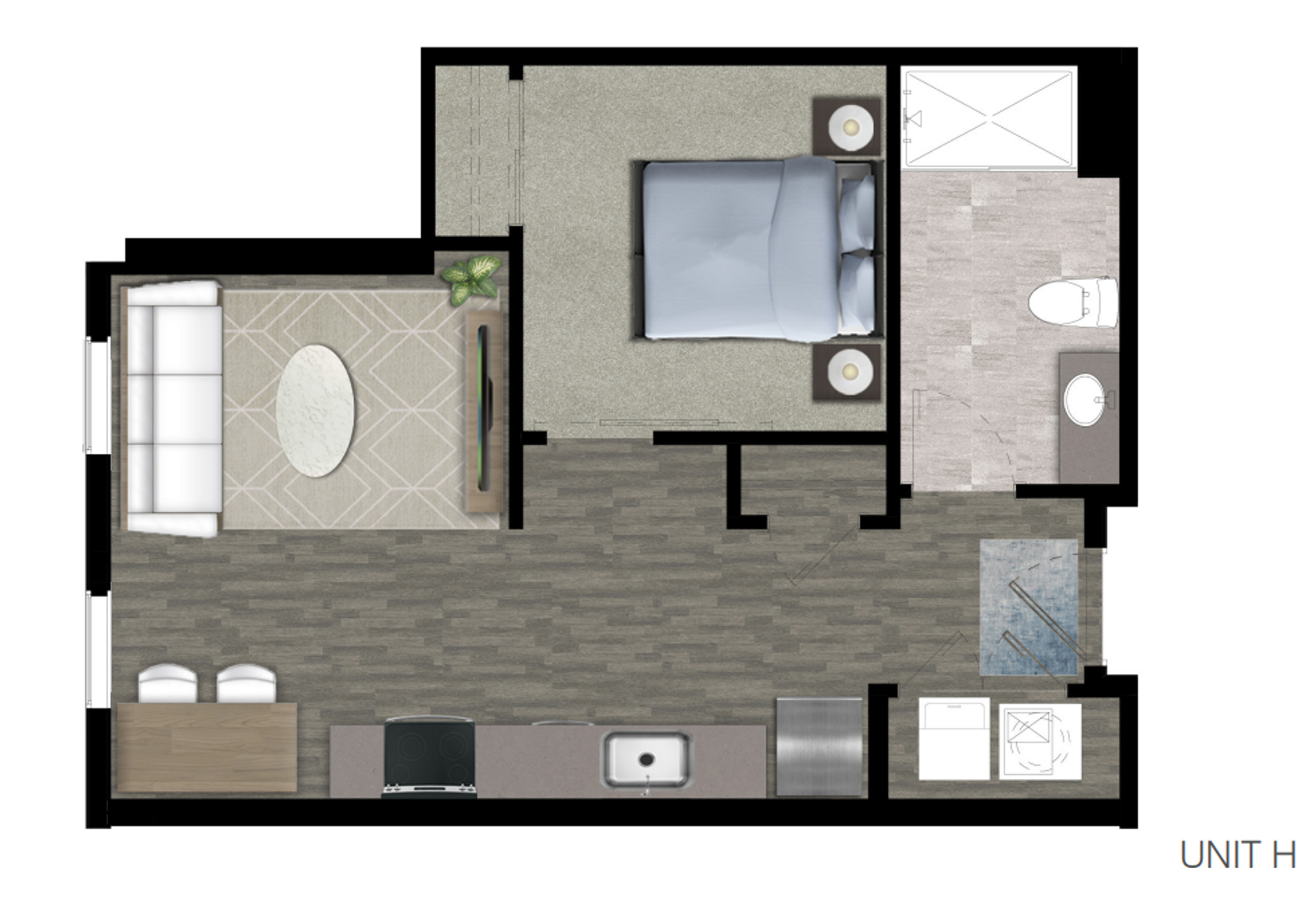 This 520 square foot one bedroom with 1 full bath apartment was built in 2023 and features 10 foot ceilings, skyline views, black appliances, fiber internet and large closets. The oversized bathroom offers plenty of storage and ample room to add more storage if desired.