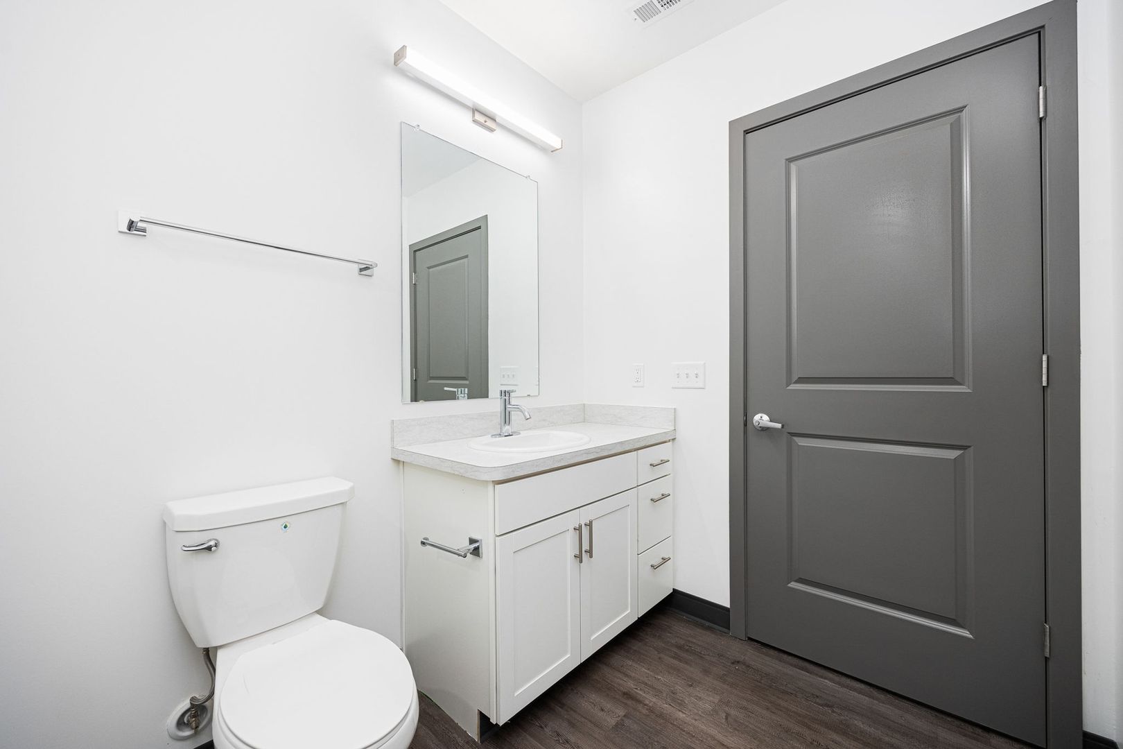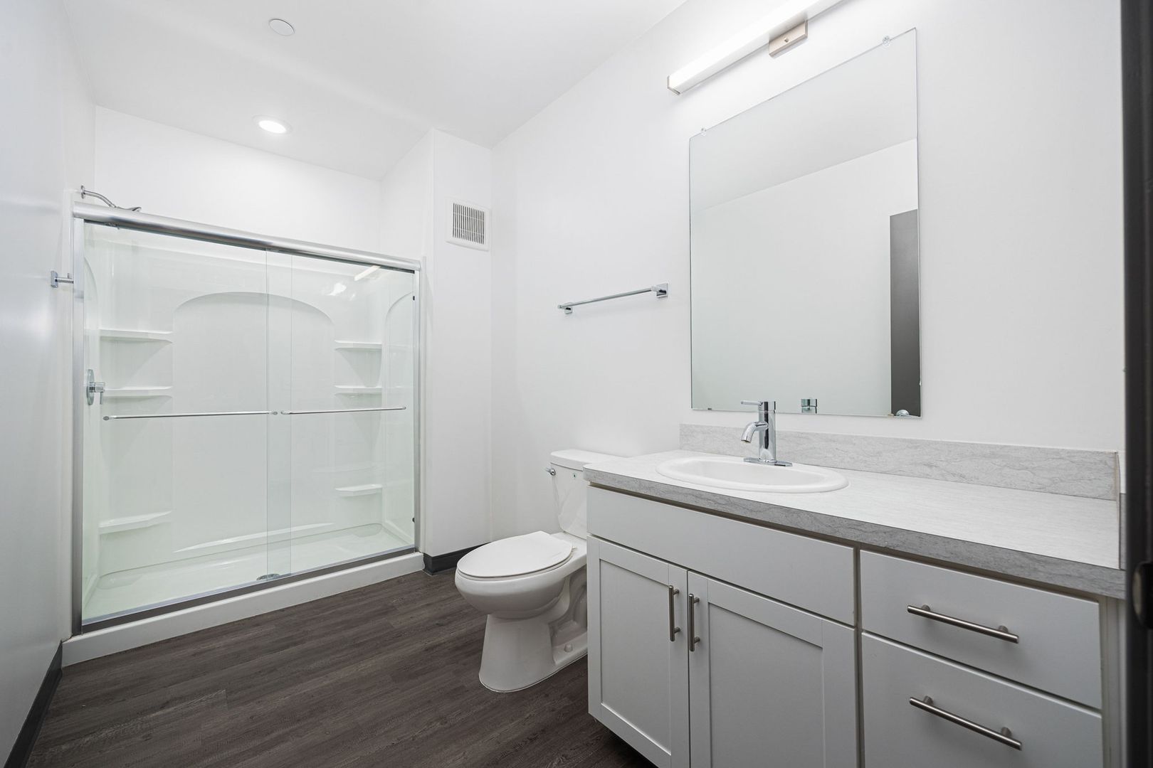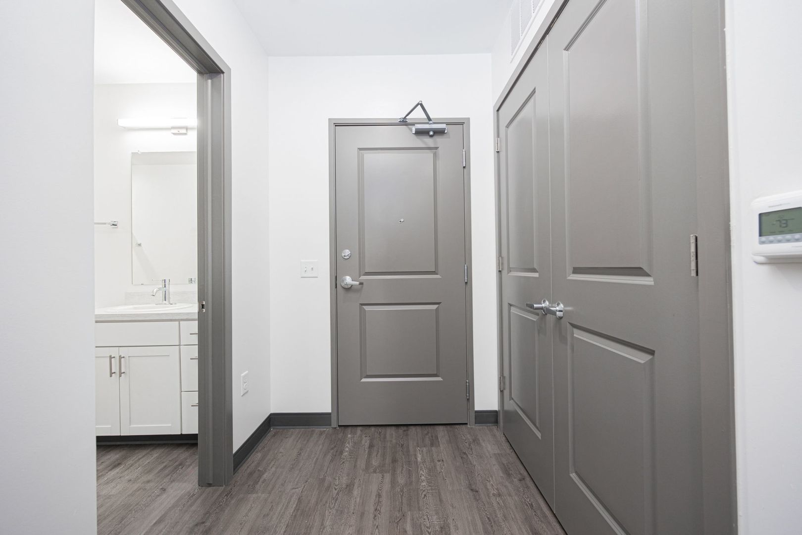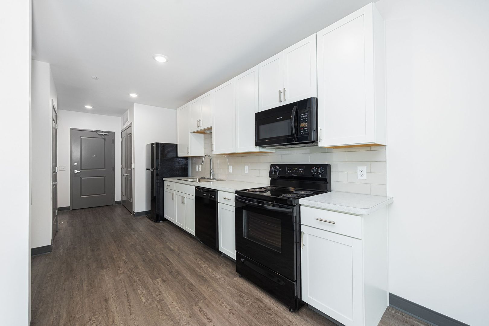 This 520 square foot one bedroom with 1 full bath apartment was built in 2023 and features 10 foot ceilings, skyline views, black appliances, fiber internet and large closets. The oversized bathroom offers plenty of storage and ample room to add more storage if desired.