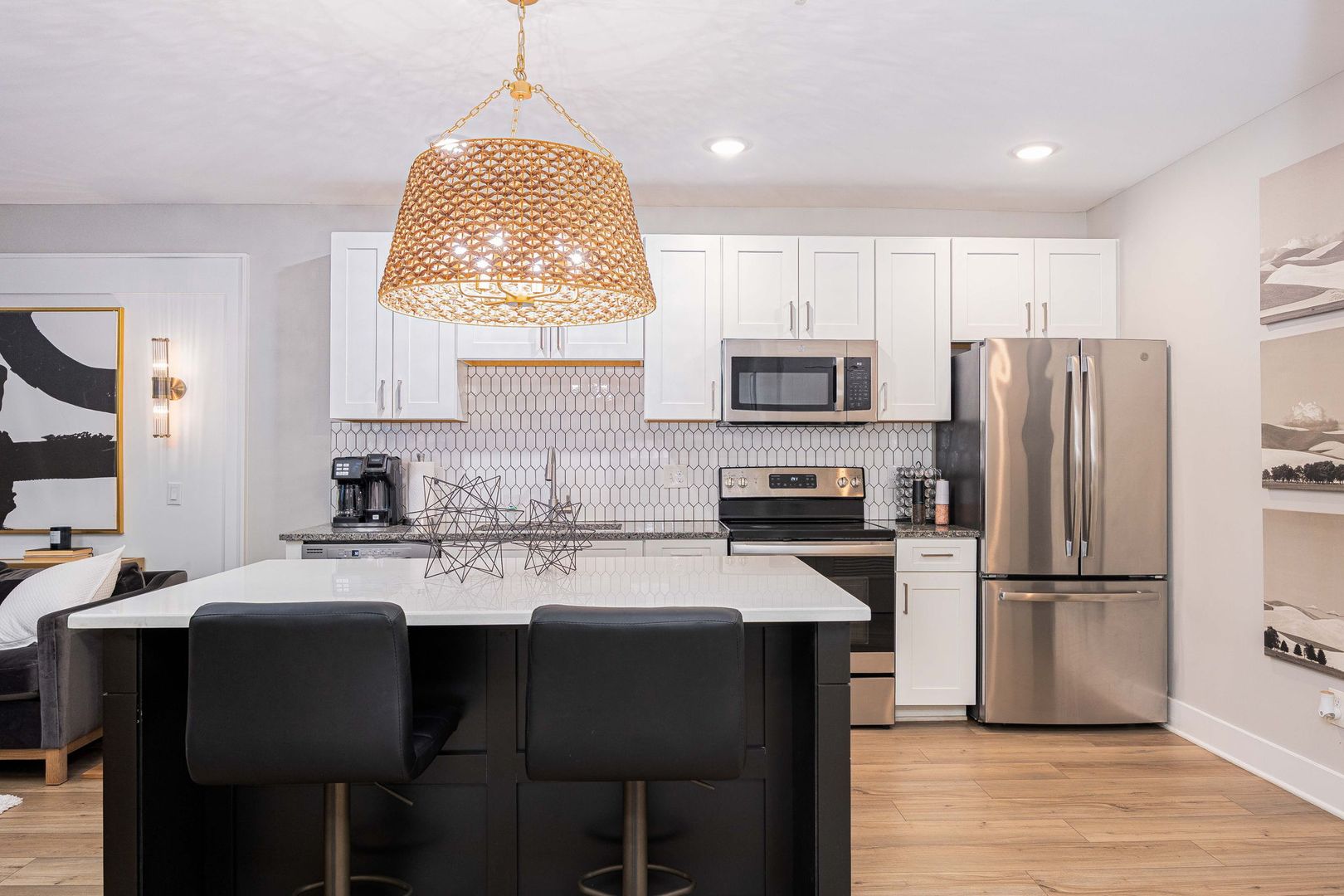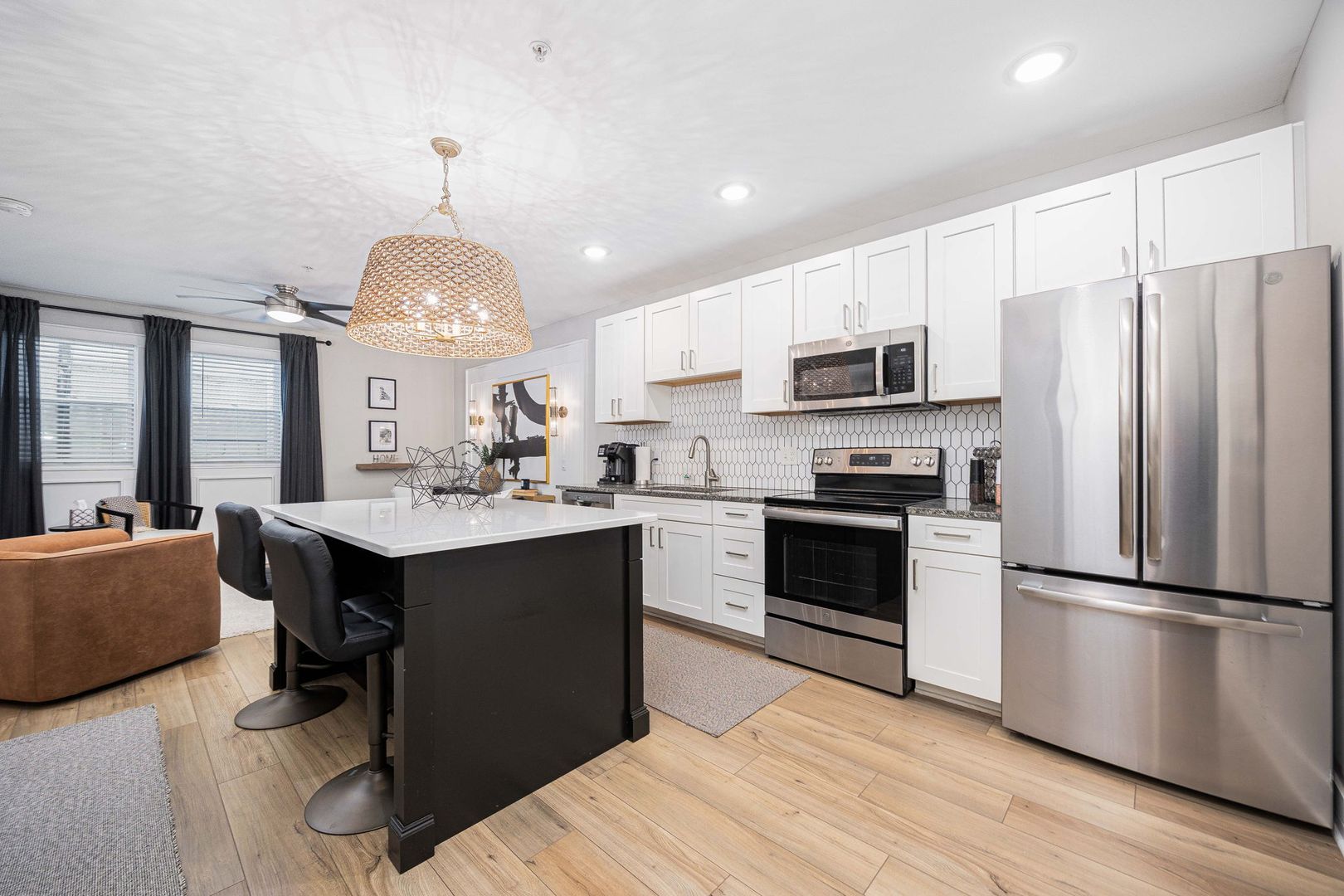 Newly renovated 1 bedroom, 1 bathroom apartment located in the heart of the Short North Arts District! Completely renovated historic building offering high end modern finishes including; LVT wood flooring, 4 piece stainless steel appliance package, plush carpeting in bedroom, secure building access with keyless entry, secure mail and package room, ceiling fans, central air conditioning, granite countertops, on-site laundry facilities and built in USB outlets throughout. This is a fully furnished unit that includes all utilities, including WiFi and garage parking as well as a fully equipped kitchen with small appliances, dishes, cookware & utensils, the bedroom offers a Beautyrest memory foam mattress with lush bedding, a WiFi color printer for those work form home days a large dresser and a walk-in closet. The oversized bathroom has plenty of soft linens, hair dryer and an abundance of storage. Just bring your clothes! Within walking distance to many of Columbus's top rated restaurants, bars, nightclubs and theaters, few short minutes from Riverside Methodist Hospital and just 1 mile to OSU Campus & hospital or Downtown Columbus in either direction.!