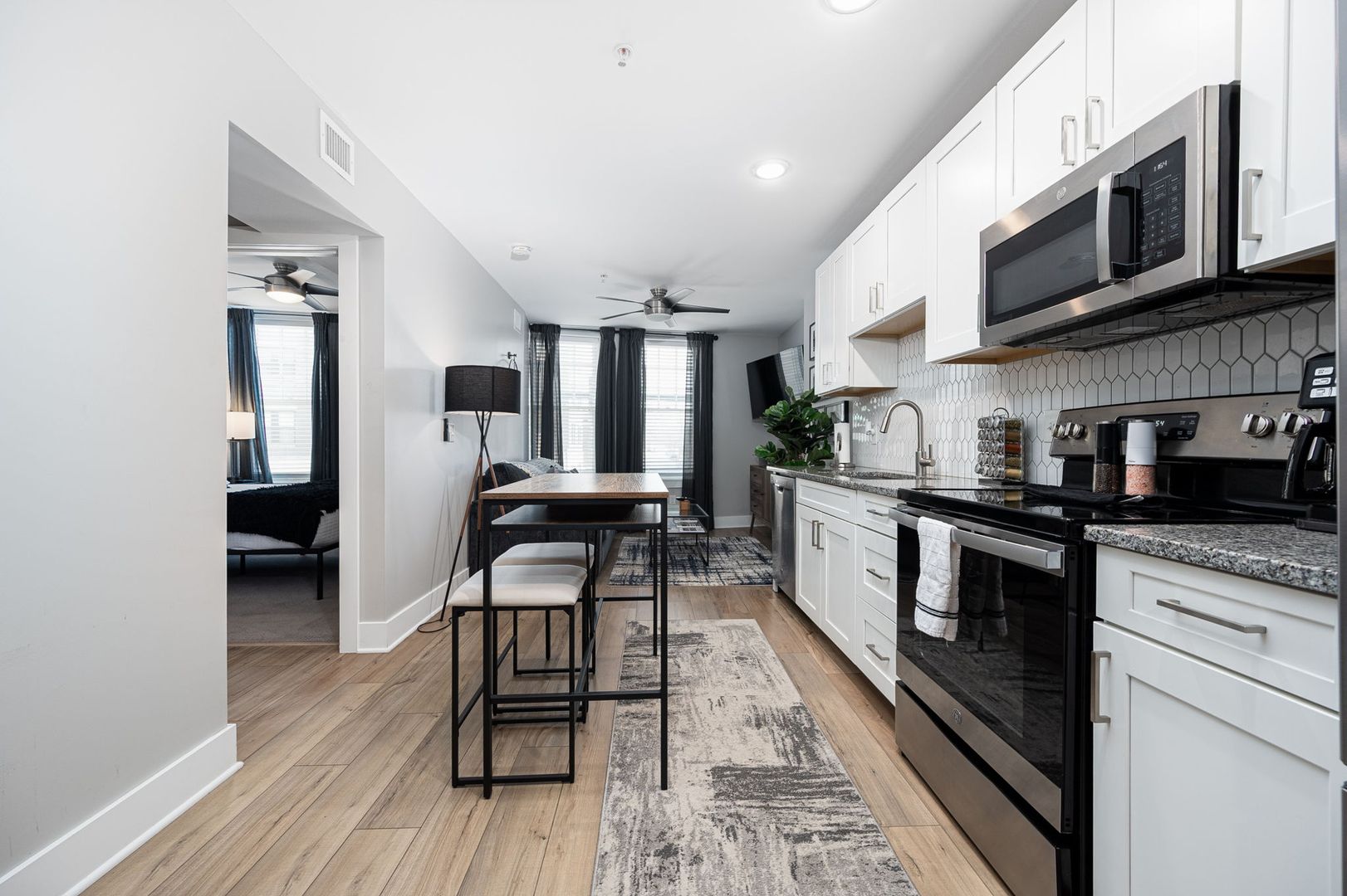 Newly renovated 1 bedroom apartment with 1 bathroom located in the heart of the Short North Arts District! Completely renovated historic building offering high end modern finishes including; LVT wood flooring, 4 piece stainless steel appliance package, high ceilings, secure building access with keyless entry, secure mail and package room, ceiling fans, central air conditioning, granite countertops, off street parking available, high speed WiFi internet and cable TV package, on-site laundry facilities and built in USB outlets. Within walking distance to many of Columbus's top rated restaurants, bars, nightclubs and theaters and just 1 mile to OSU Campus and downtown Columbus.