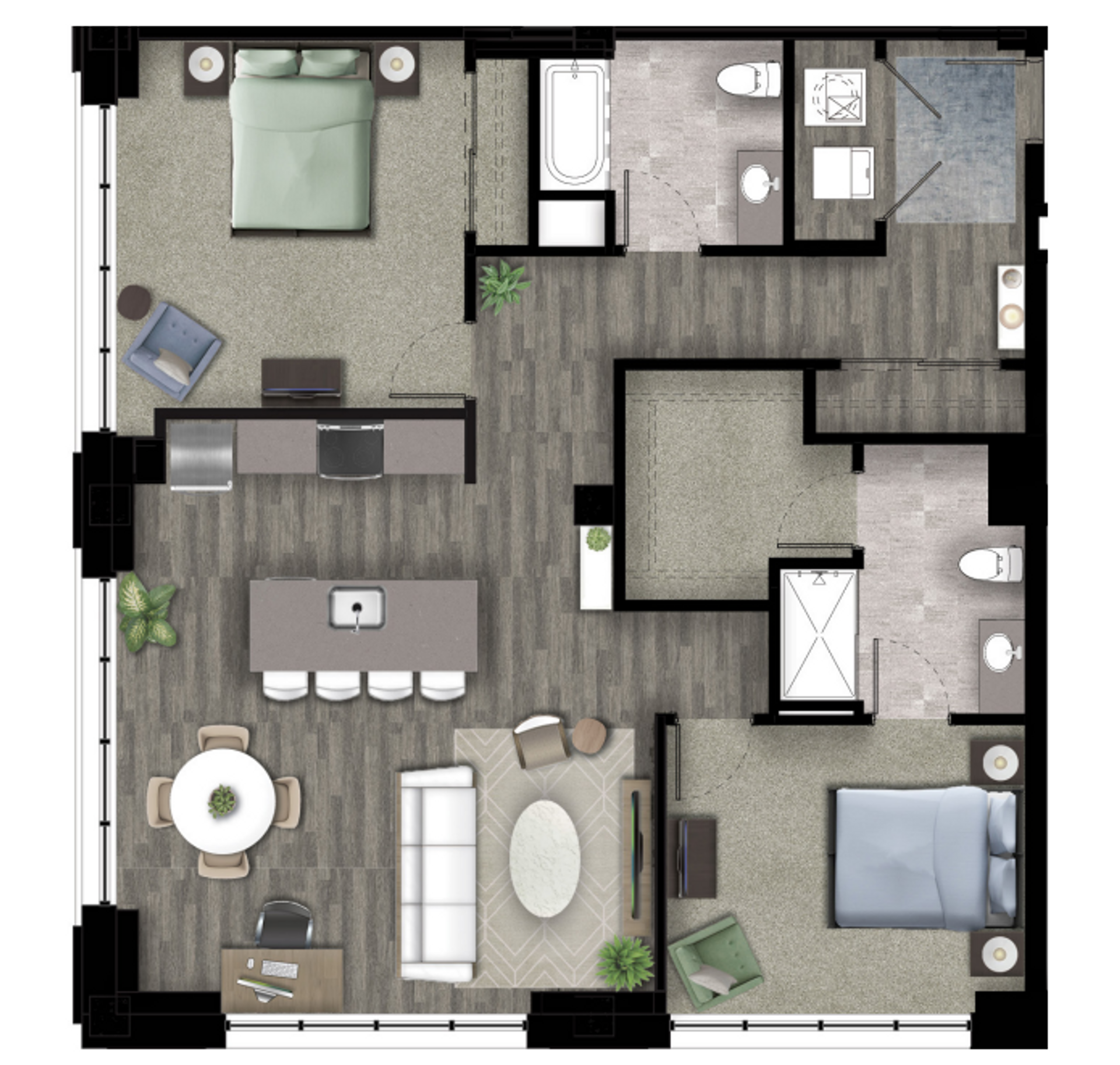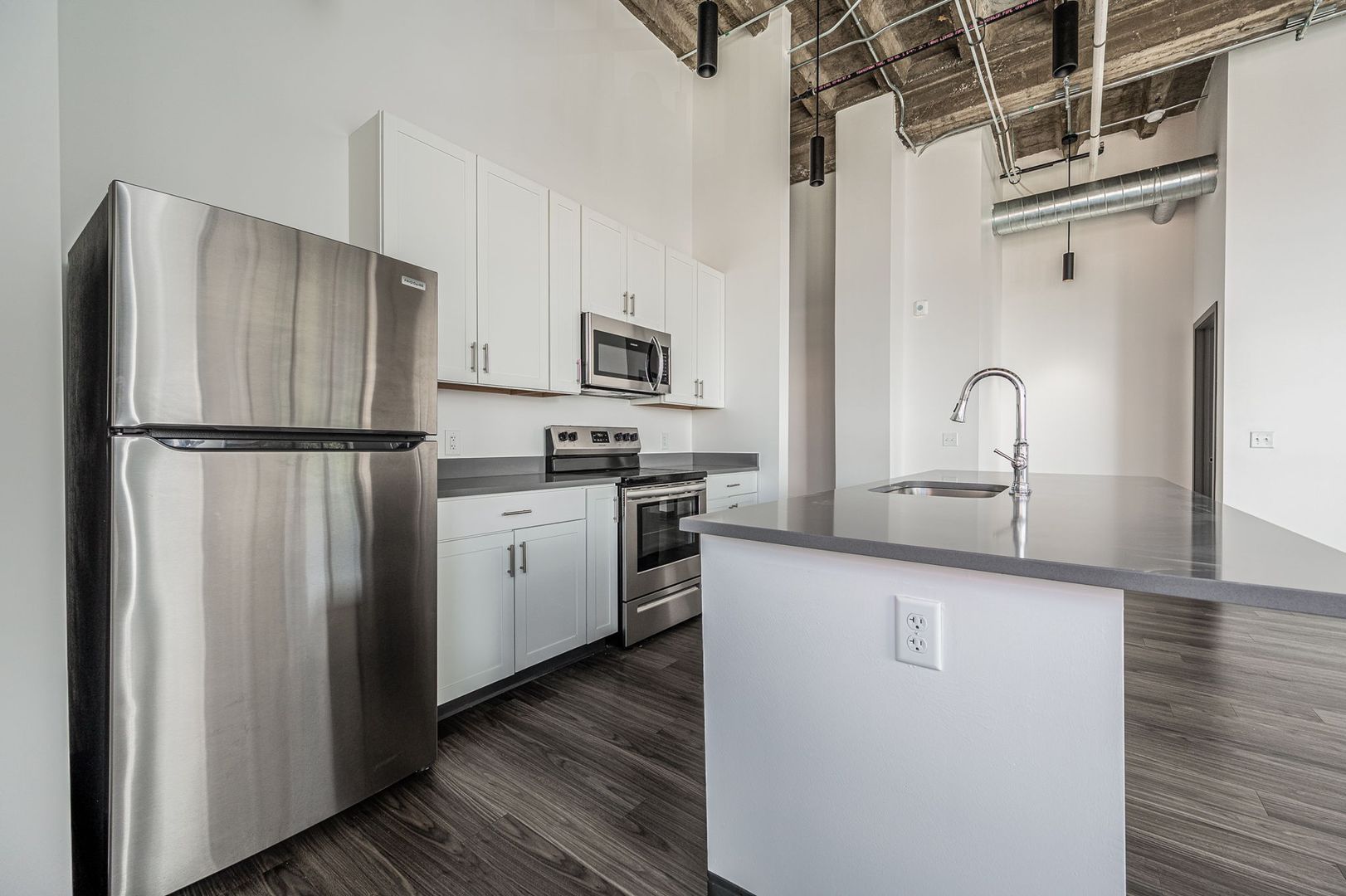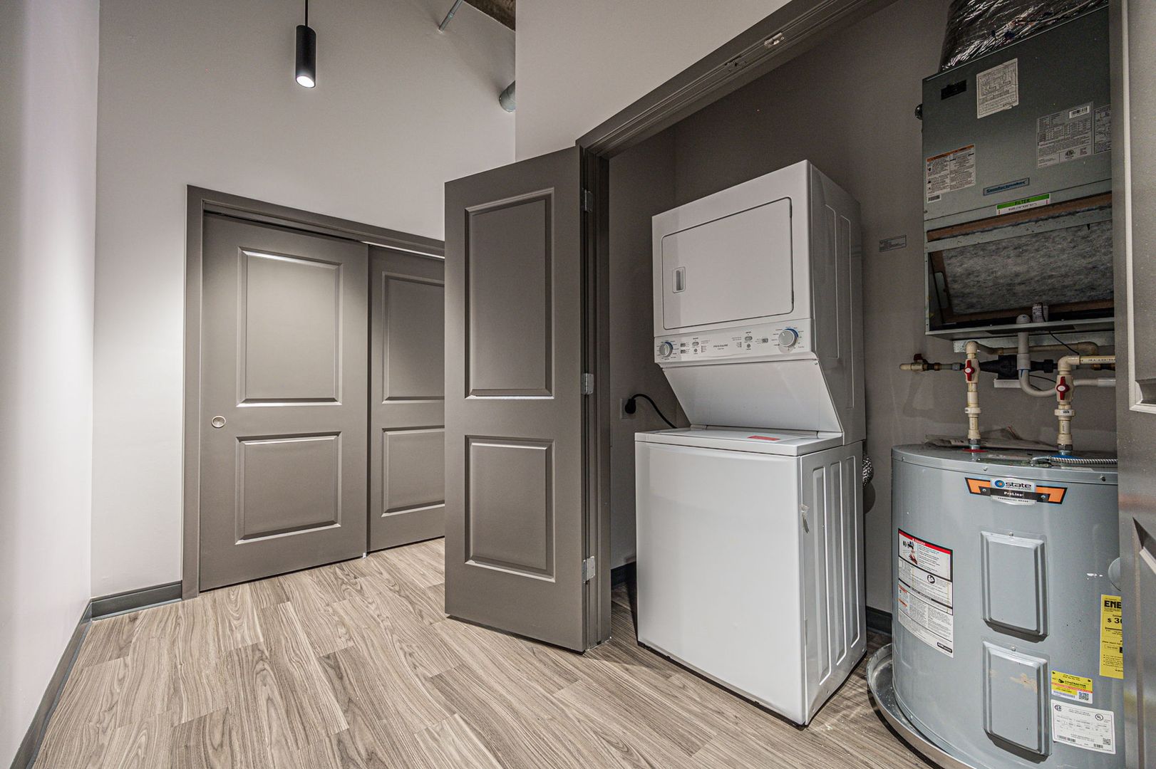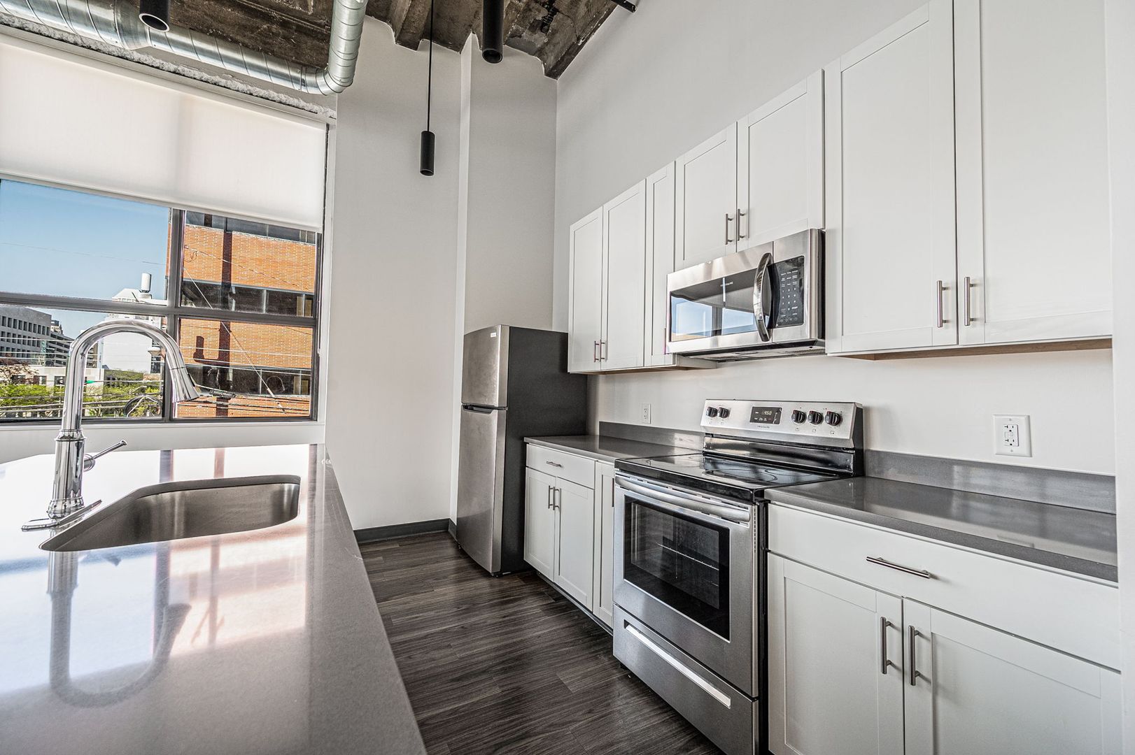 This 1,266 square foot 2 bedroom, 2 full bath apartment has everything you want. This industrial loft style unit features 16 foot ceilings with exposed beams and ductwork, granite countertops, stainless appliances, vinyl flooring, kitchen island, fiber internet and large walk-in closets. The oversized bathroom offers plenty of storage and ample room to add more storage if desired.