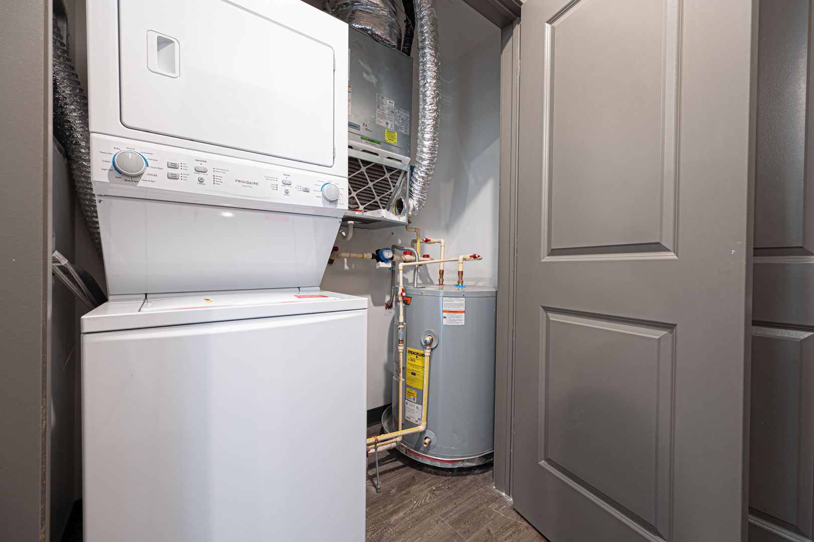 This 551 square foot 1 bedroom, 1 full bath apartment was built in 2023 and features 10 foot ceilings, skyline views, black appliances, fiber internet and large closets. The oversized bathroom offers plenty of storage and ample room to add more storage if desired.